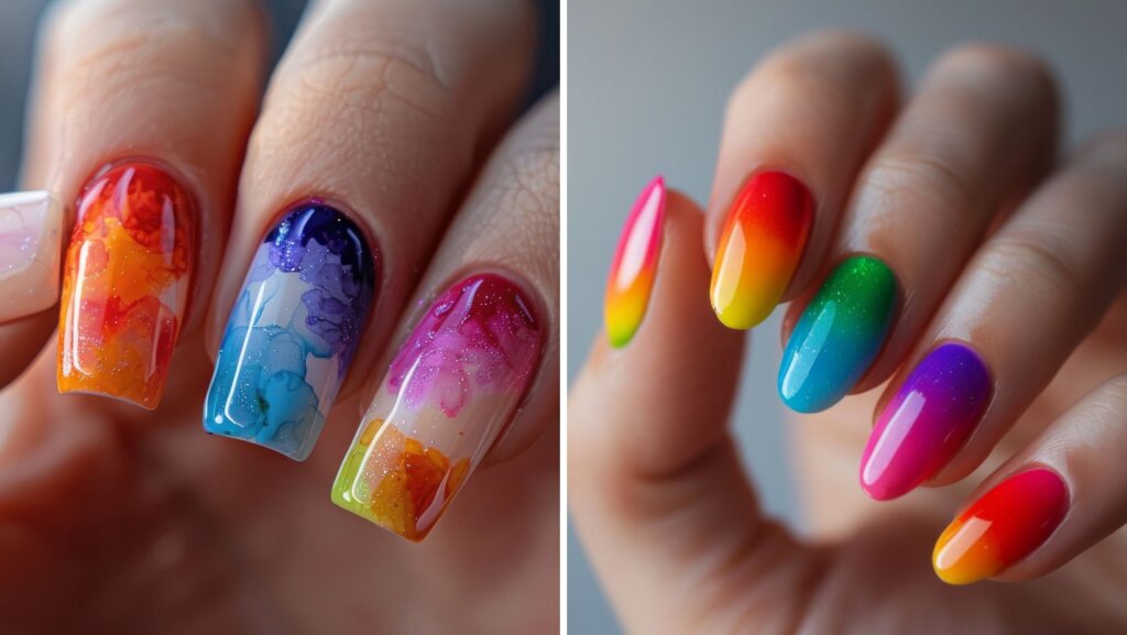 The haldi and mehendi ceremonies are all about vibrant colours, laughter, and festive vibes. For these joyous occasions, bright nail art is the way to go. Rainbow gradients, floral watercolour designs, or bold pops of yellow, green, and orange capture the mood perfectly. Ombre nails or hand-painted motifs add a playful touch and pair beautifully with colourful mehendi outfits. Since these functions are often outdoors and filled with rituals, playful yet durable gel nail art ensures your nails remain picture-perfect through it all.