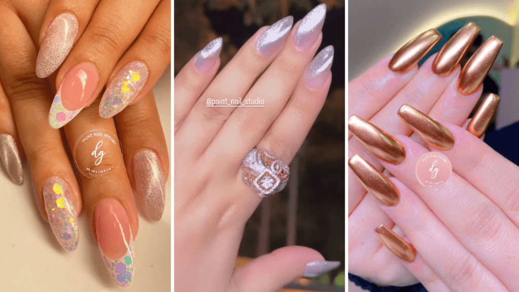 Chrome nails have been a huge hit this season and were adorned by many across occasions and locations. Chrome nails consist of a shimmery sheen often applied on top of a base colour. The sheen in a chrome look is very different from that of glitter; due to how subtle it is, it almost looks metallic. Often done with colours such as silver, pink, golden, and icy blues, chrome nails are the perfect winter nail trends, whether you’re prepping up for festivities, or even otherwise!