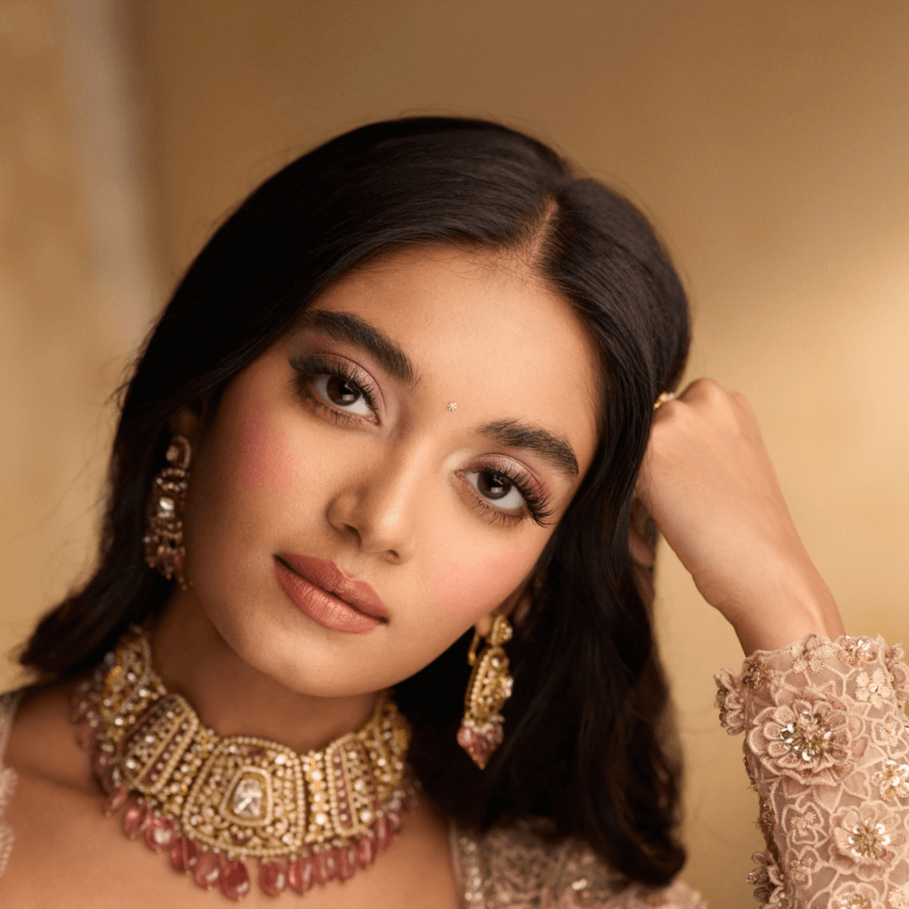 This look is sure to make you feel like the best version of yourself. It’s perfect for the bridesmaid who want to shine without stealing the spotlight. This look entails a fresh, dewy radiance, easily achievable with the Hydrating Foundation. It adds luminosity to the skin, enhancing its natural beauty and radiance. The Multi-Use Blush in Soften can help you achieve a healthy glow with a hint of blush on the cheeks. Furthermore, for this look, you keep your lips soft and elegant with a nude shade in the Hydra Crème range: Panache. Lastly, you can finish the look with the Brown Kajal softly defining the eyes.
