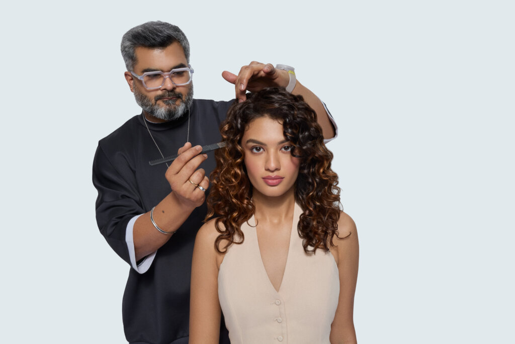 The process involves starting with a mocha base using IGORA ROYAL, followed by diffused highlights and soft slicing. “The goal is to enhance what’s already there,” Vaishakhi adds. Her look offers refined elegance for clients across ages and hair types.