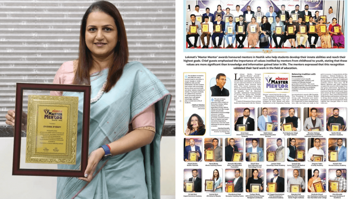 In a significant recognition of its contributions to education and vocational training, the LTA School of Beauty received the prestigious Lokmat Master Mentor Award on July 22 in Nasik.