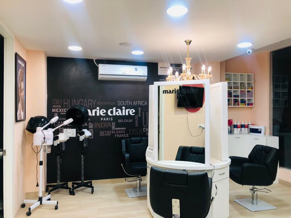 | – Salon Name: Marie Claire Salon, Indore – Address: Plot # 17, 1st Floor, Scheme no. 78, Part II, Vijaynagar, Next to Vrindavan restaurant Indore , Madhya Pradesh – 452010 – Owner: Mr Kartavya – Size: 1000 sqft. – How long has the salon been in the premises: Newly launched – How many staff: 7 to 8 members – Budget: 40-45 lakh. |
