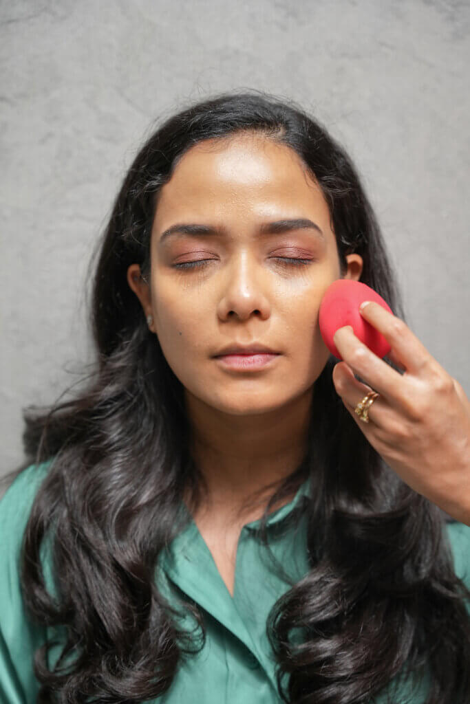 Step 3: Base Make-up : Start by using colour correcting with a colour corrector. Also, using a light coverage foundation/tinted moisturiser or BB cream will even out your skin tone.