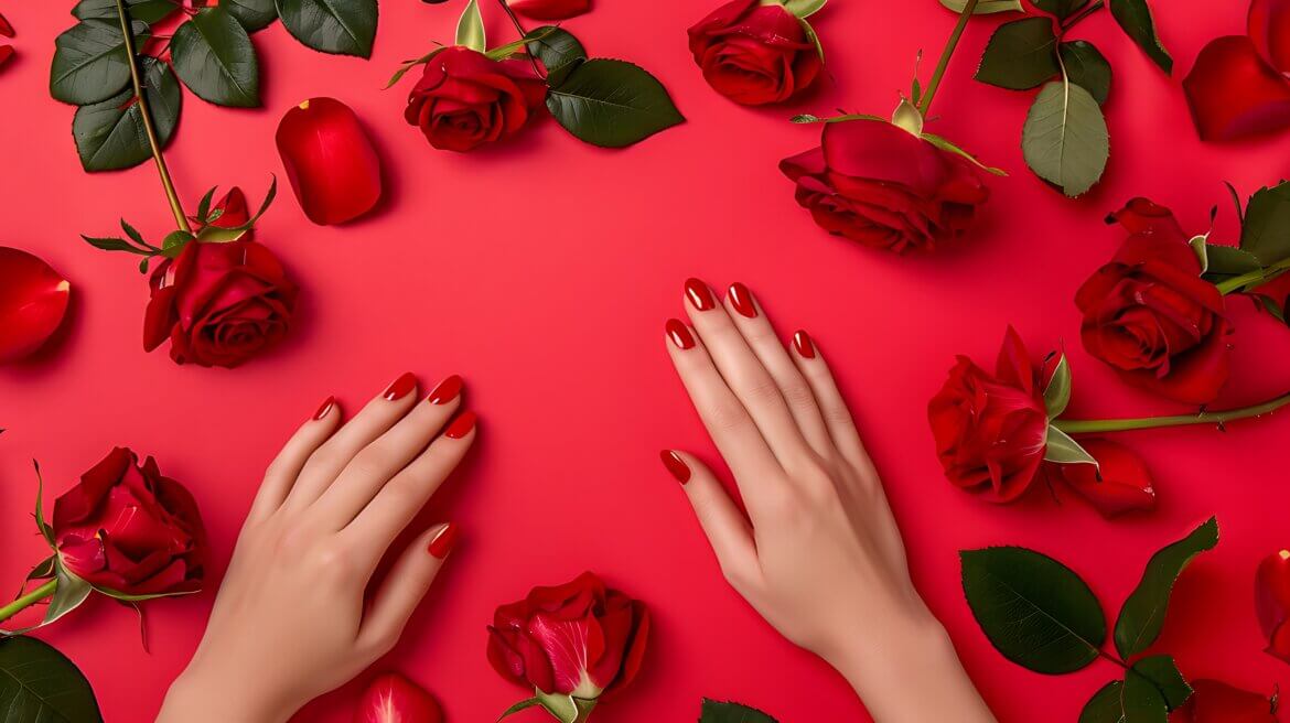A polished red manicure remains the definitive Valentine’s statement. High-shine, precisely shaped red nails exude confidence and sensuality. For those who favour enduring elegance, this style delivers impact without complication.