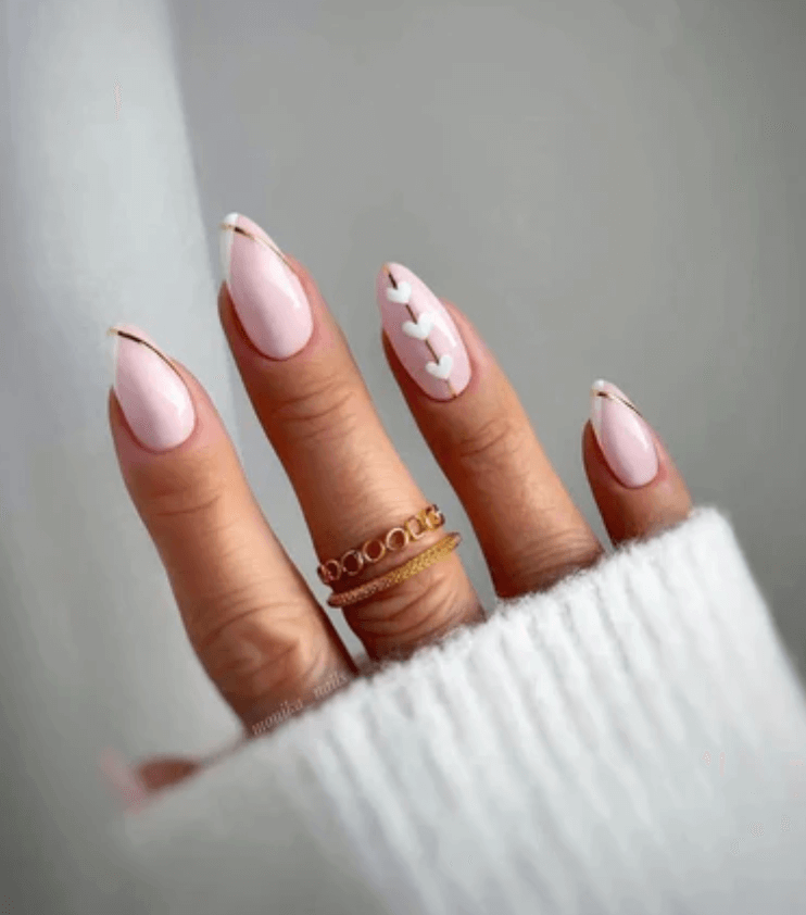 Minimalists may gravitate toward the milky pink ombre a seamless transition from nude to soft blush. The finish is clean, refined, and quietly romantic, offering a manicure that transitions effortlessly from Valentine’s Day to everyday wear.